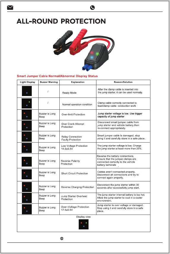 Pericat S400 - Protection and Status Indicators; Smart Jumper Cable Protection