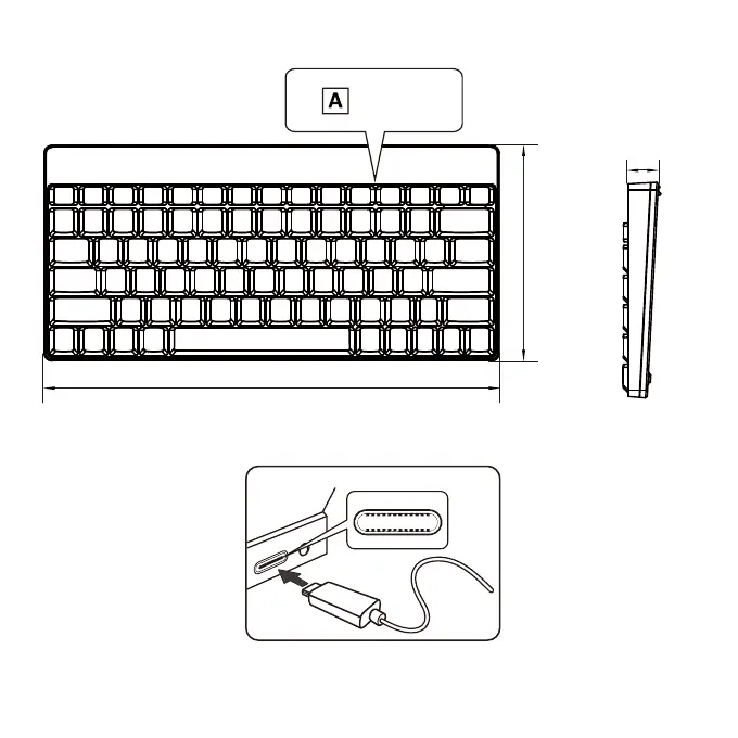perixx PERIBOARD-422 - Product Illustration and Details; Keyboard Dimensions; Connection Diagram