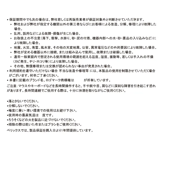 保証規定のご注意