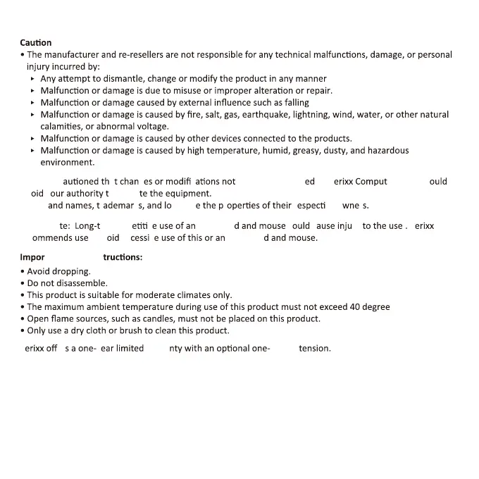 perixx PERIBOARD-513II - Safety and Usage Guidelines; Cautionary Notes; Important Safety Instructions