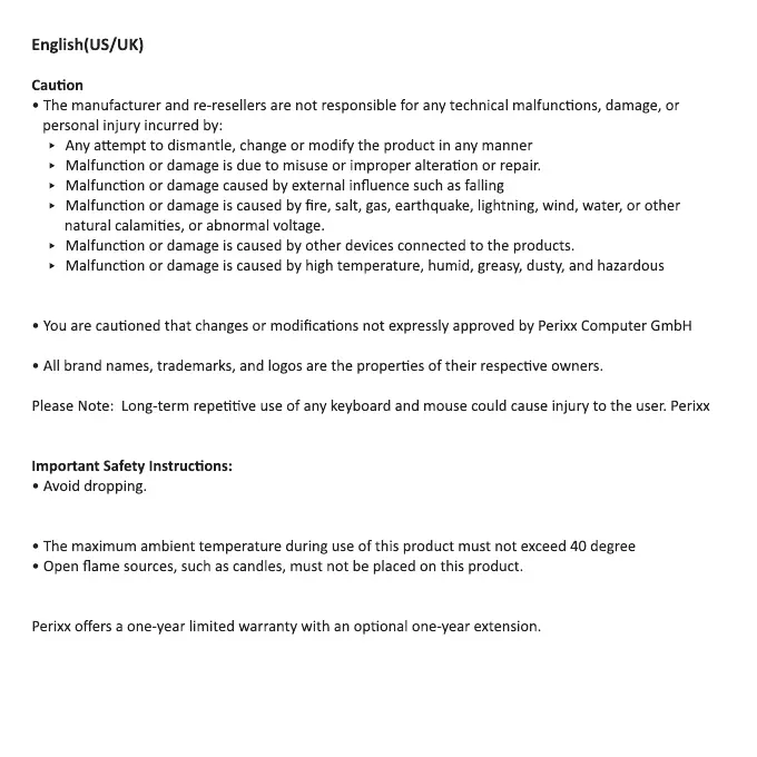 perixx PERIBOARD-524 - General Cautions and Safety