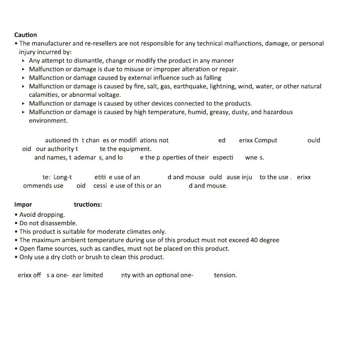 perixx PERIBOARD-718 - Safety and Precautions; General Cautions; Important Safety Instructions