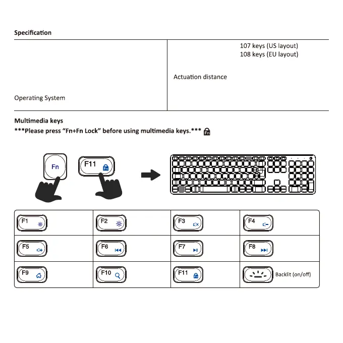 perixx PERIBOARD-718 - Product Specifications; Keyboard Specifications; Multimedia Keys Functionality