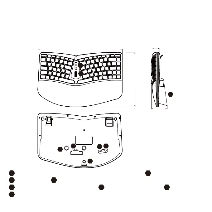 LED Indicators (Low Baery/pairing, Caps Lock and Scroll Lock) Scroll Wheel/Middle Click
