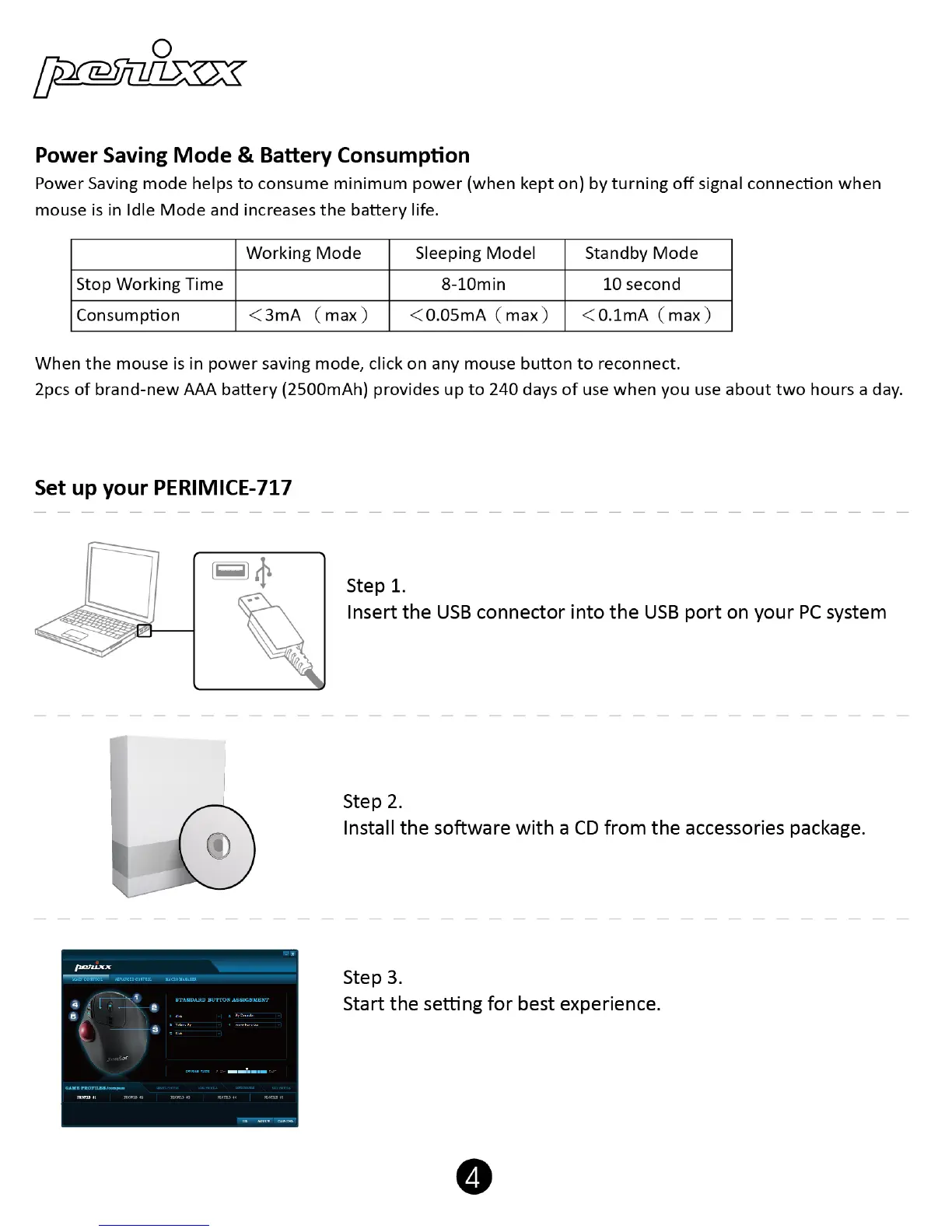 perixx PERIMICE-717 - PERIMICE-717 Setup Guide; USB Connection and Software Installation; Software Launch and Initial Configuration