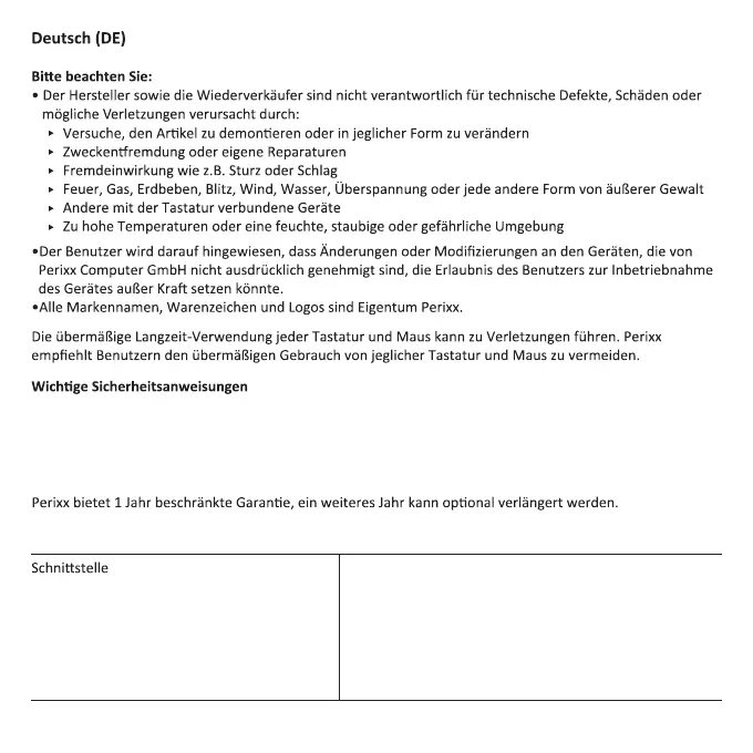 • Lassen Sie das Gerät nicht fallen •Bauen Sie das Gerät nicht auseinander •Das Gerät ist für moderates