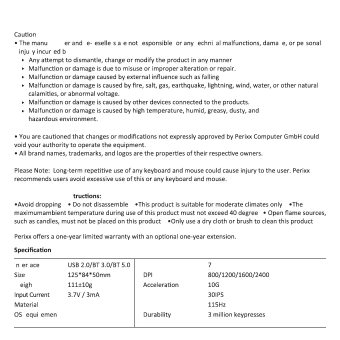 perixx PERIMICE-803 - General Cautions and Safety Guidelines