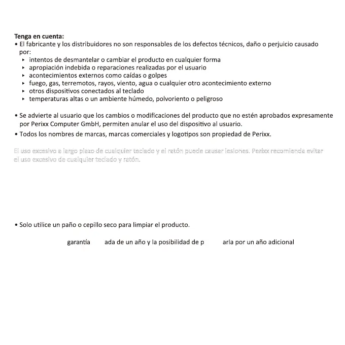 exvo a laro plateclado y el ratón puede cPerixx recomienda evitar