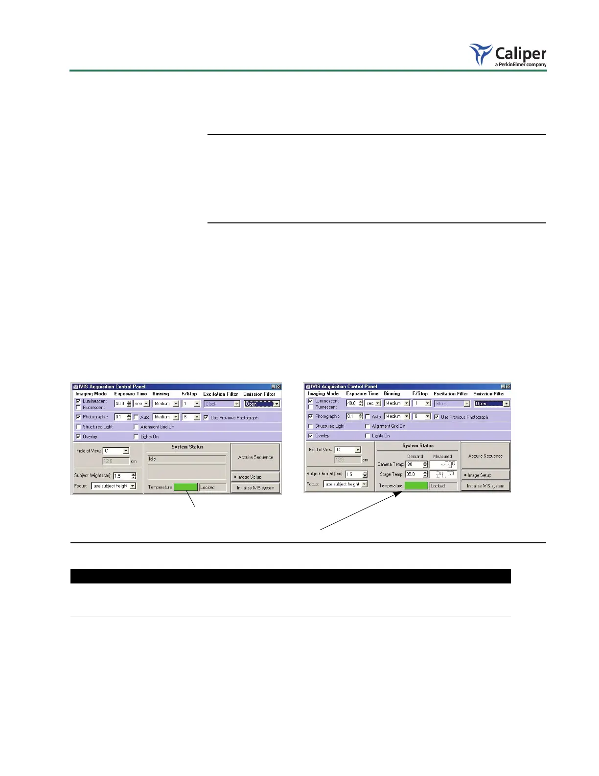 ■ To check the temperature of the CCD, click the Temperature square (red or
