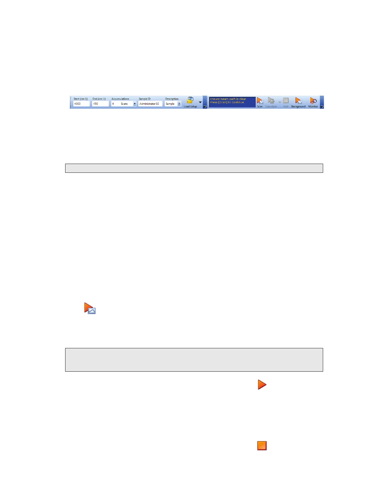 3. Place your sample in the instrument or accessory and then click to begin scanning
