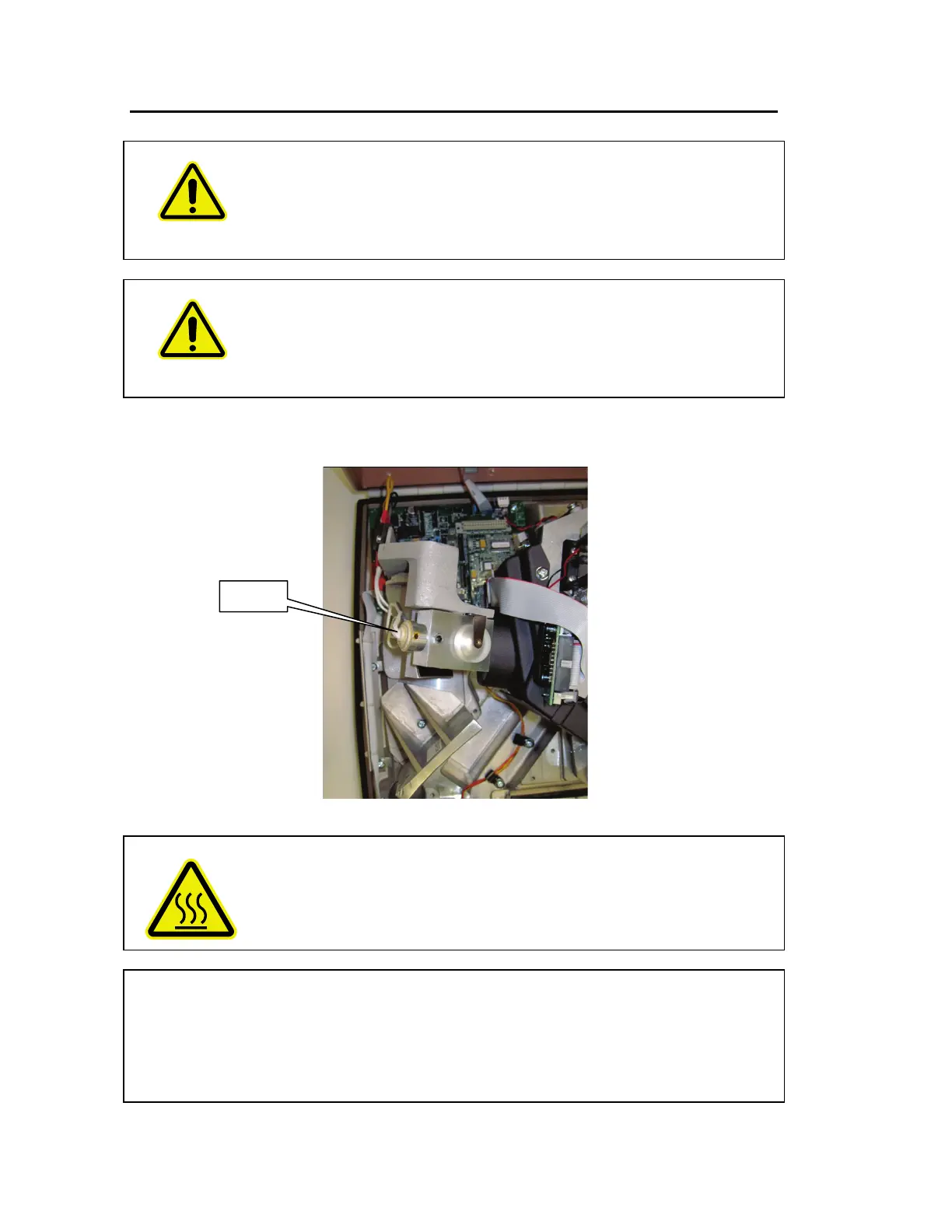 1. Open the main cover of the instrument as detailed on page 70 and identify the source