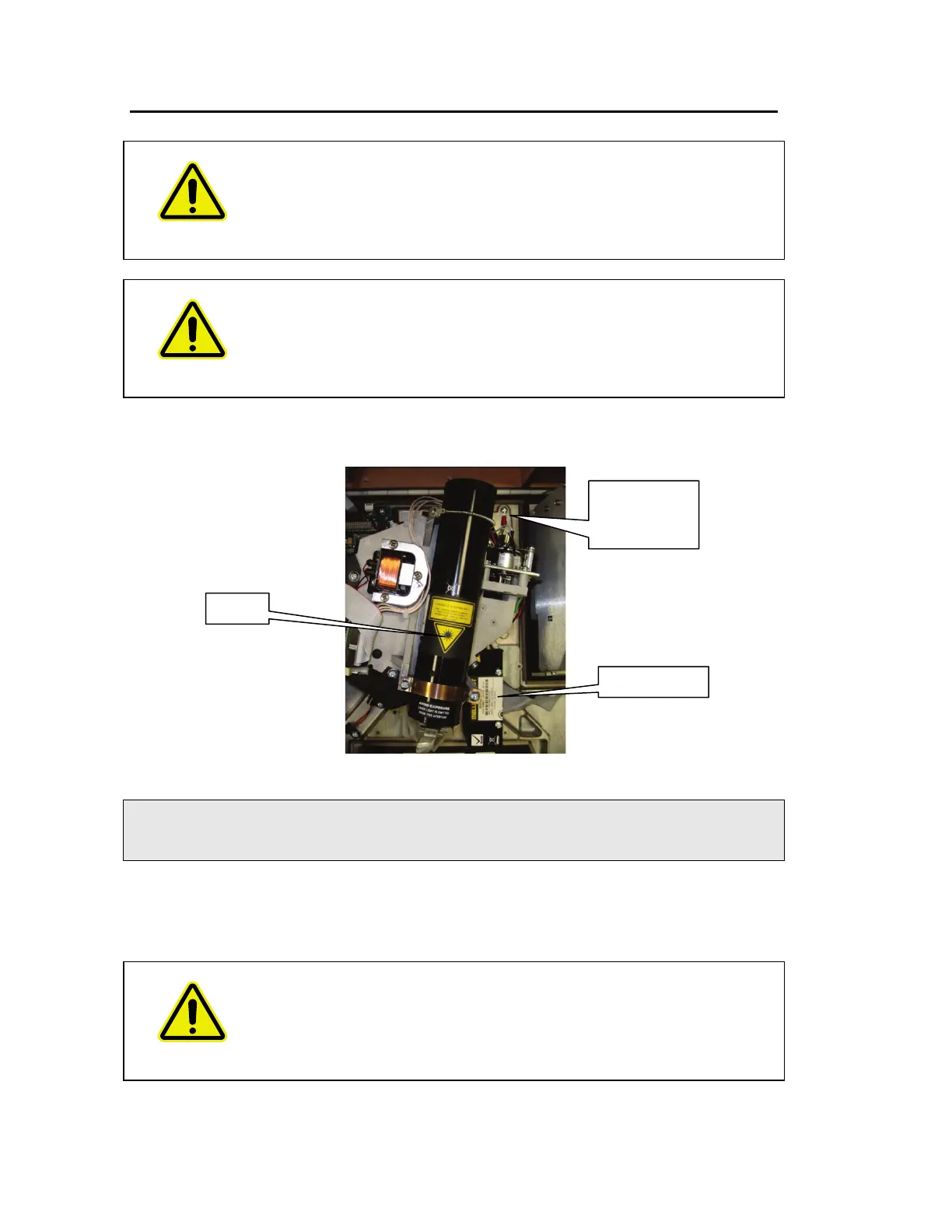 1. Open the main cover of the instrument as detailed on page 70 and identify the laser