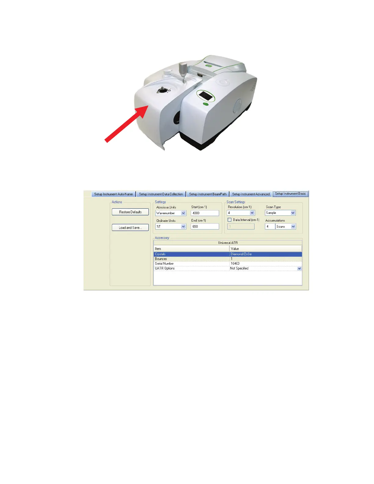 accessory information on the Setup Instrument tabs.