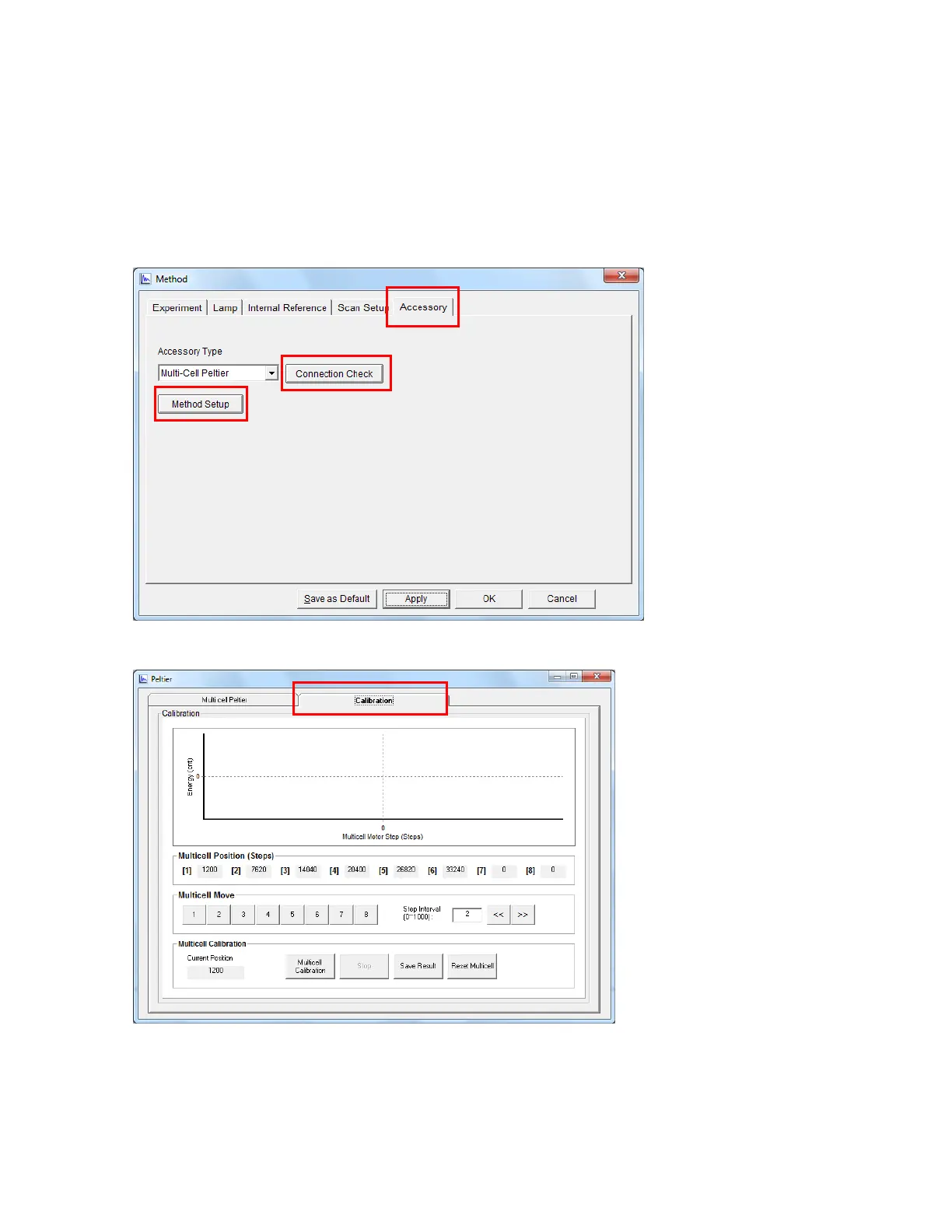2. Select the Calibration tab in the Peltier setup. The following dialog box will appear.