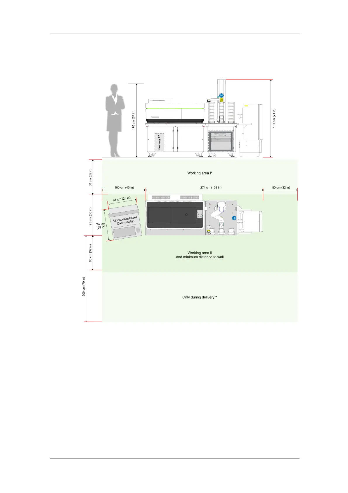 reduced from 80 to 15 cm if the automation system consists only of the plate:handler