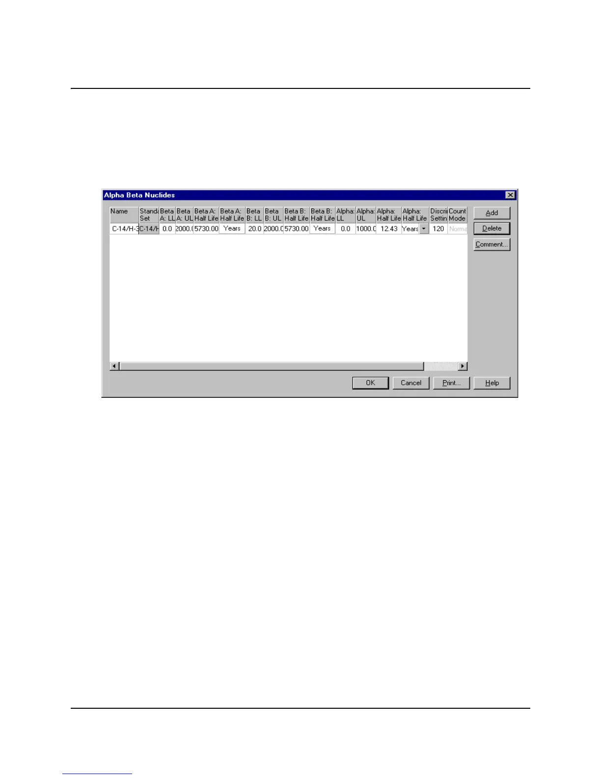 with the Alpha Beta Nuclide name. Clicking on this field displays the entire Alpha