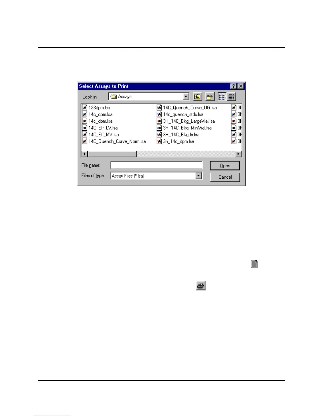 1. Select the File-Print Assays Main menu option. The Select Assays to Print