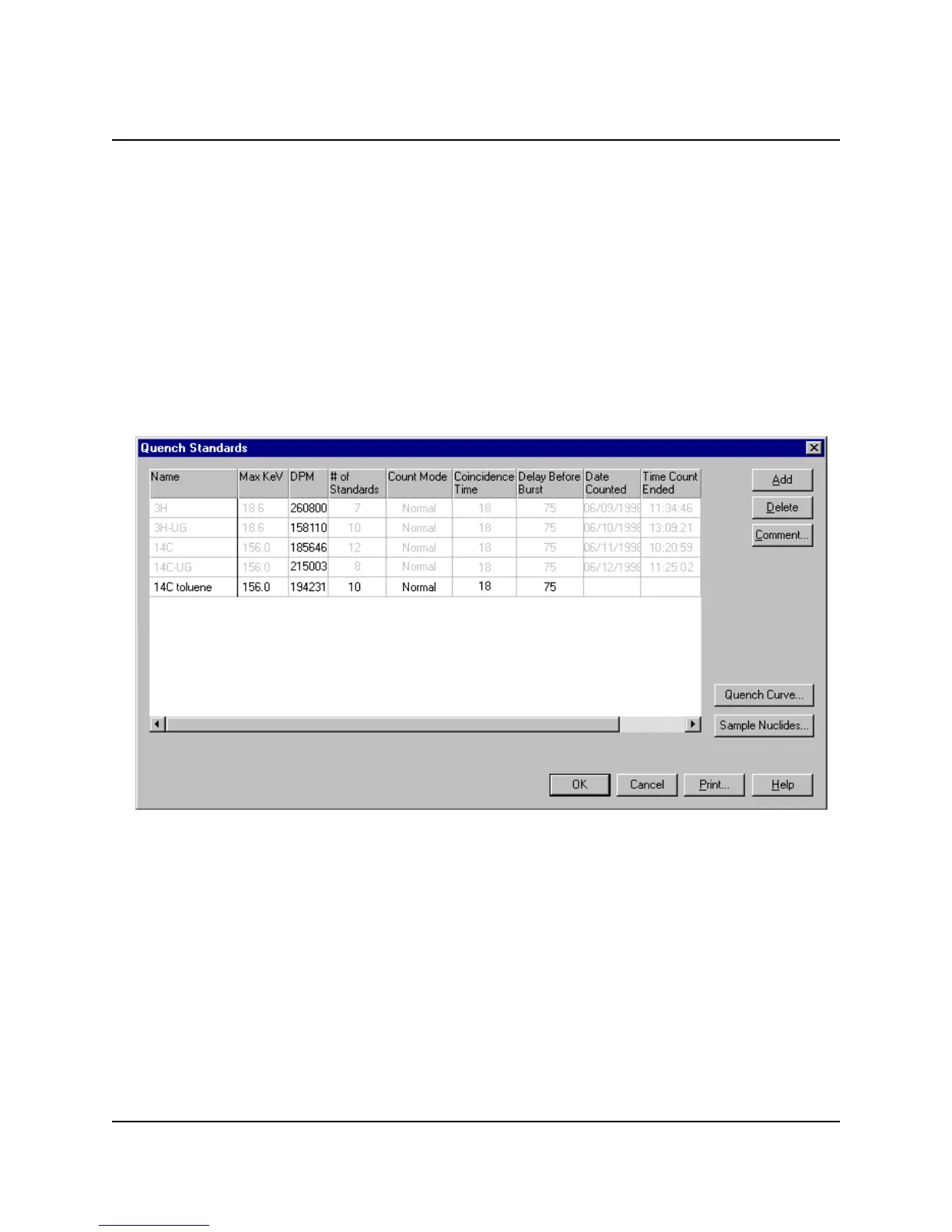 stored or select a quench standards set for DPM assays or data reanalysis in