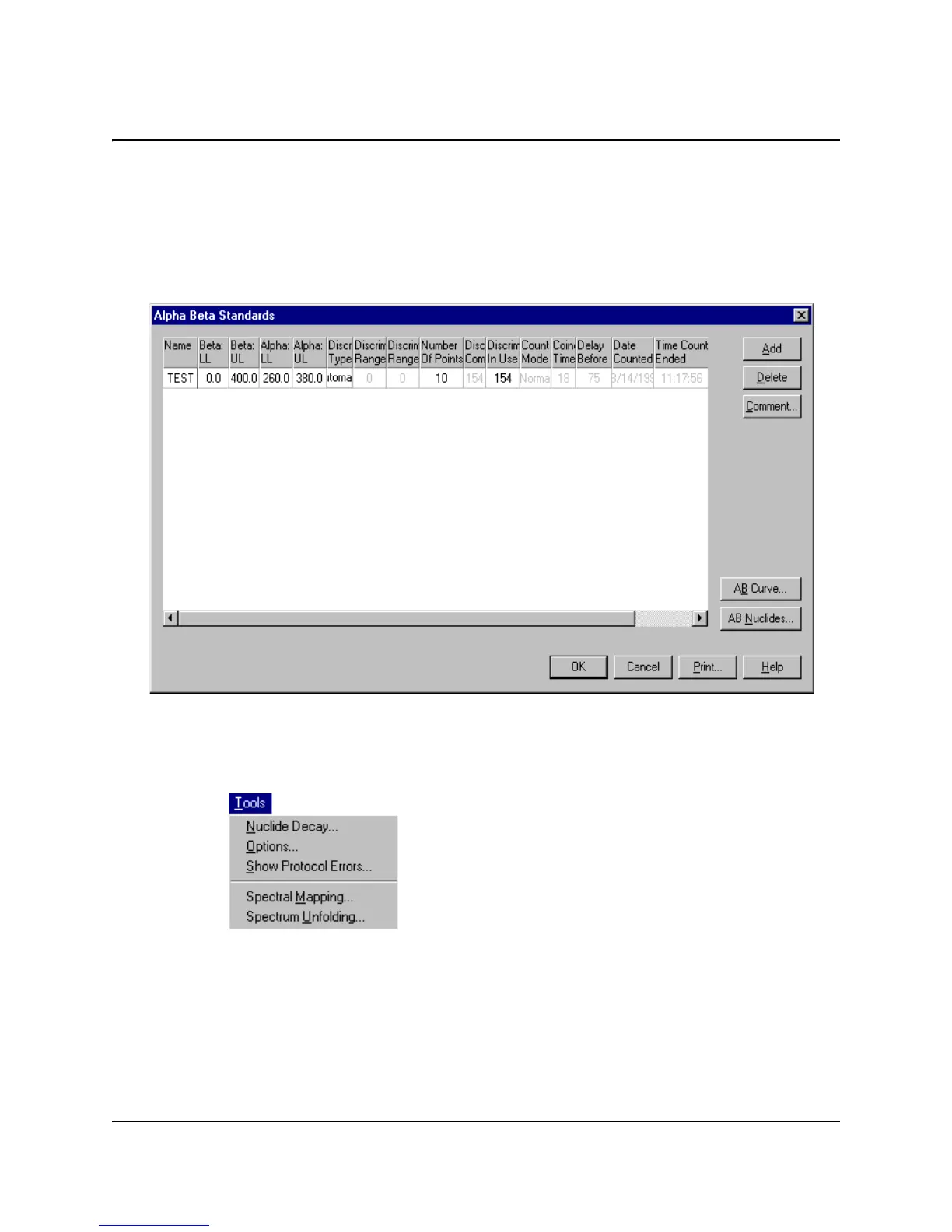 This menu item allows you to display the Alpha Beta Standards Library window.