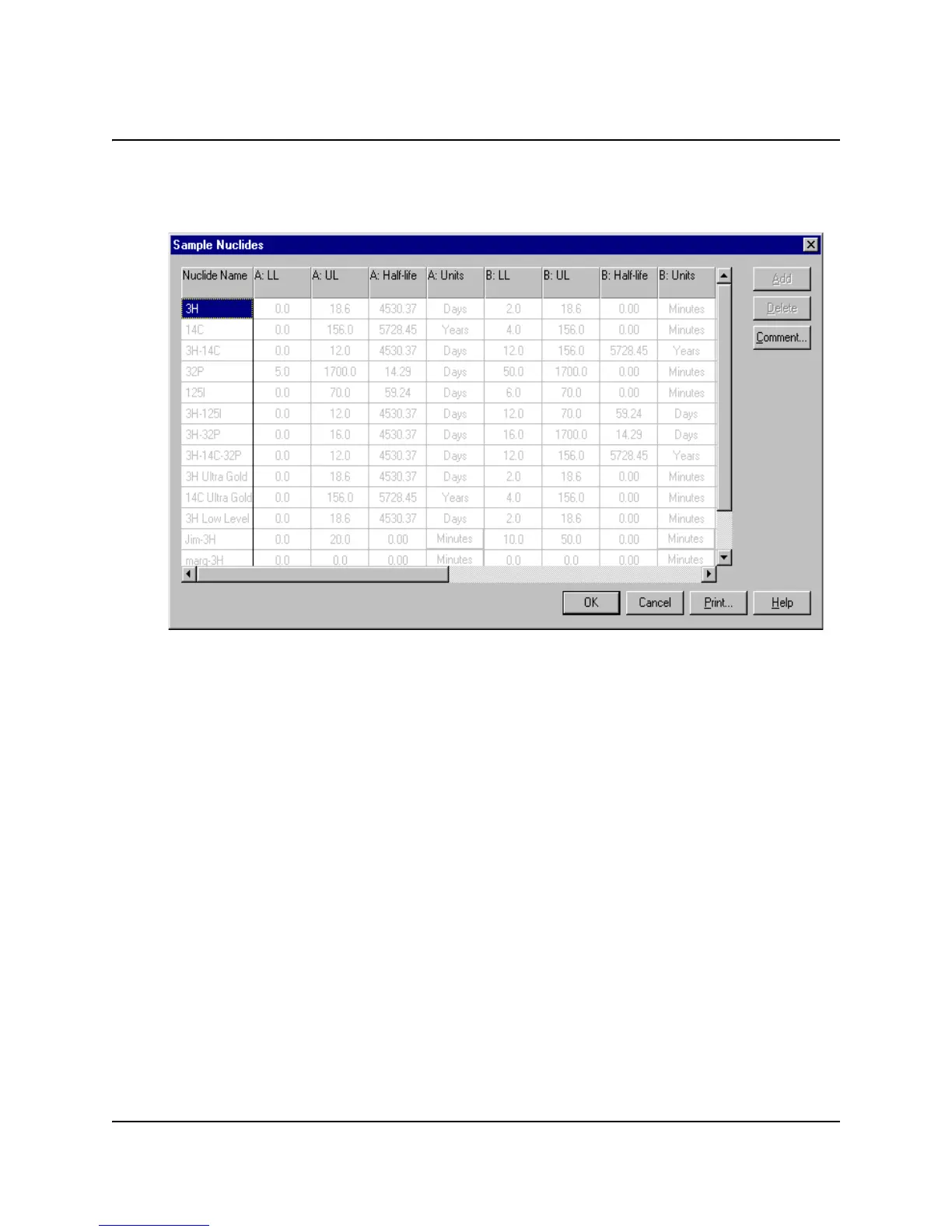 Clicking on the Name button brings up the Sample Nuclide window allowing you