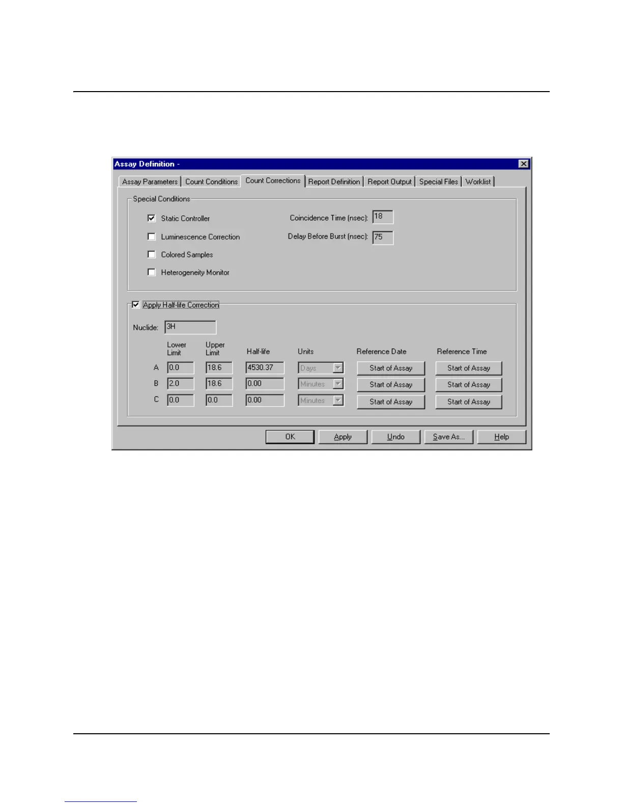 Figure 5-4 Assay Definition - Count Corrections Tab.