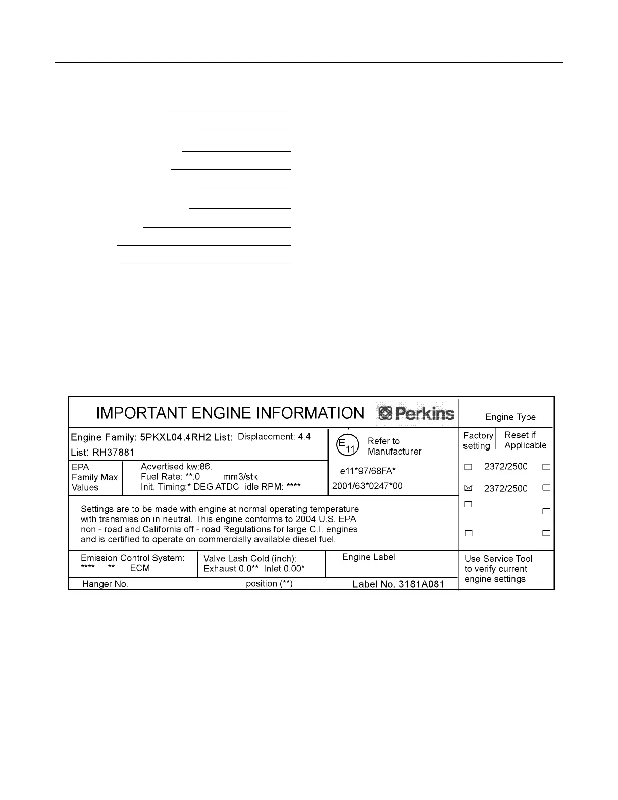 This typical example of a label is installed on engines that have electronic fuel injection systems and installed on