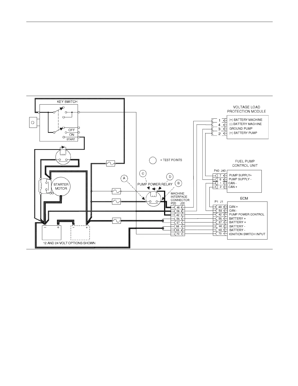 Schematic for the fuel injection pum p and ECM pow er supply for en gines with a Machine Interface Connector that has 70 pins