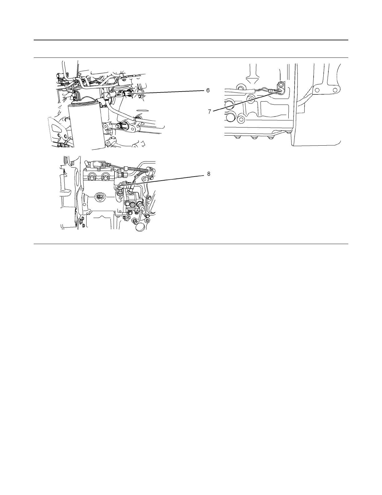 (6) Engine oil pressure sensor (7) Primary speed/timing sensor (8) Secondary speed/timing sensor
