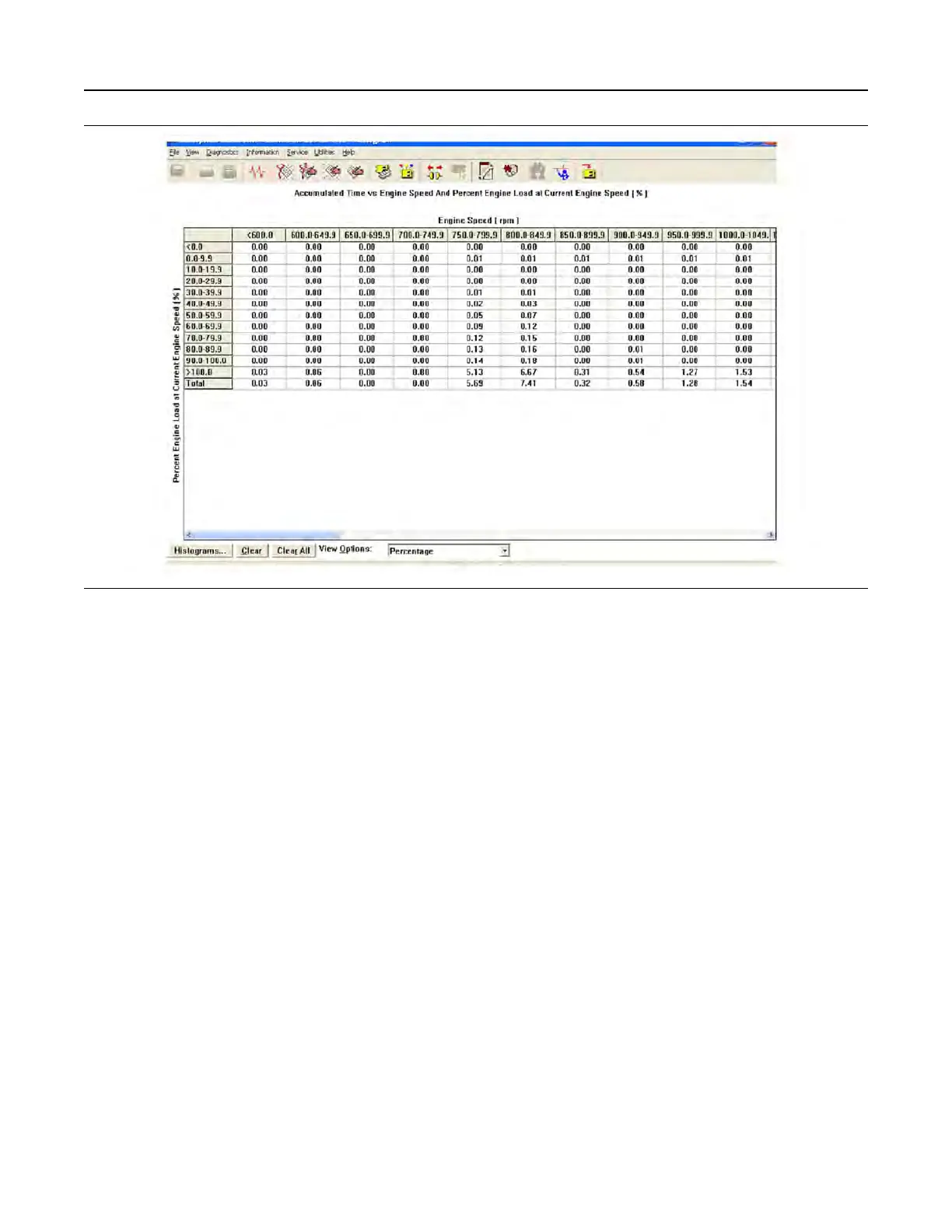 This screen is used to illustrate load percentage at the current engine speed. This screen can be helpful in