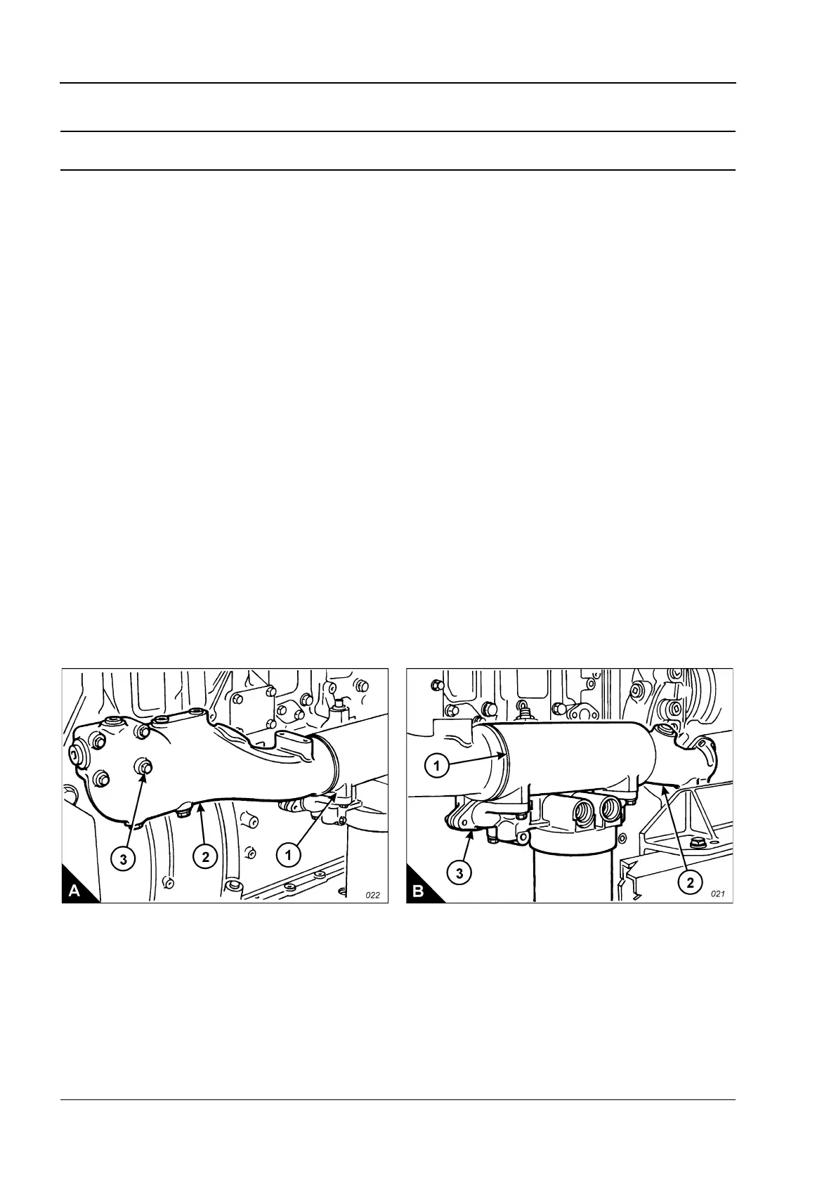 4 Remove the four bolts which retain the oil cooler (B1) on the oil filter header (B3).