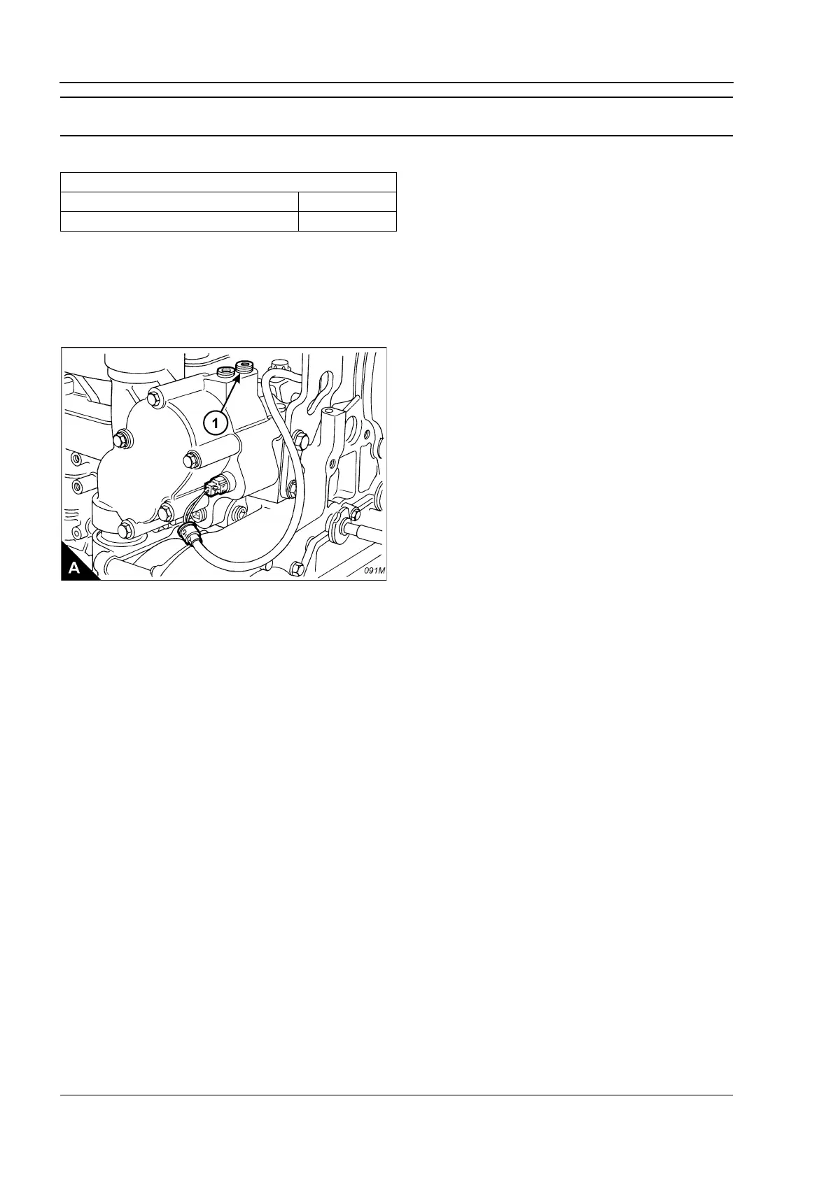 2 Remove the plug (A1) from the coolant manifold and connect the pressure gauge, GE50033, to the port.