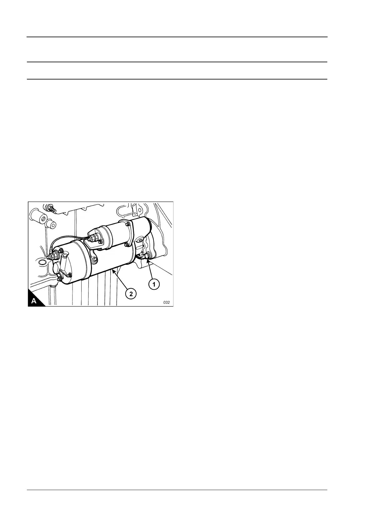 3 Fasten a hoist to the starter motor. Remove the three bolts (A1) which retain the starter motor on the flywheel