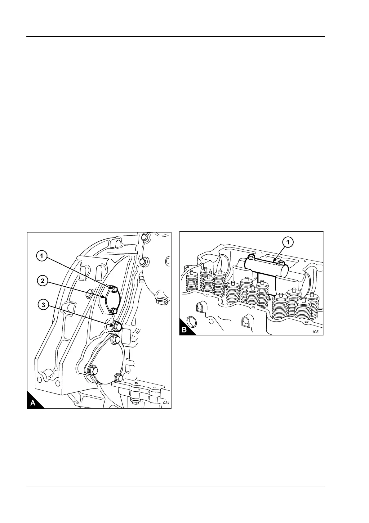 13 Use the bolts of the rocker shaft to retain the cradle tool (B1), GE50018, at the position shown (B).