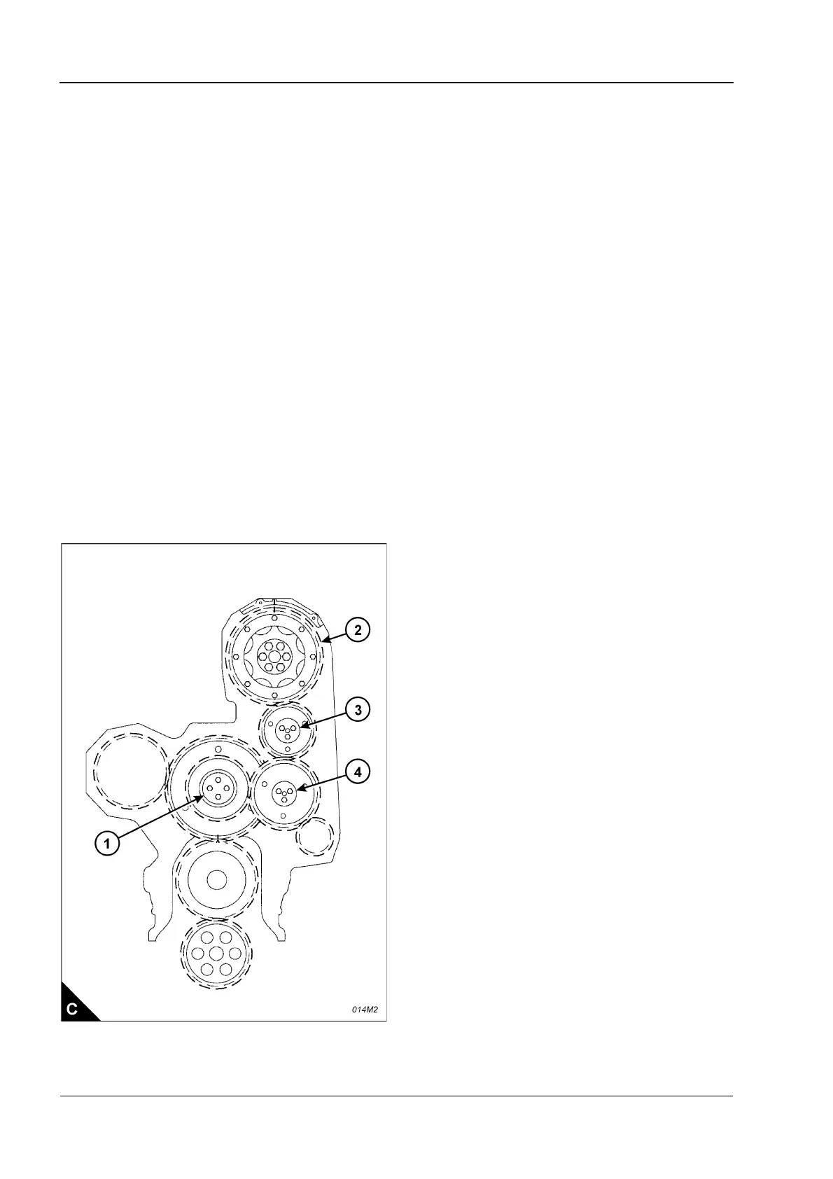 6 Remove the camshaft gear (C2), if relevant. Use the guide stud, GE50019. If the gear case is to be removed,