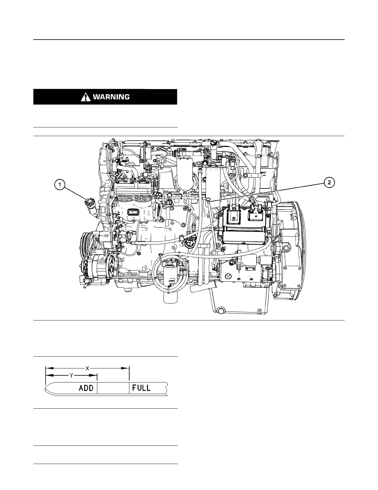 (1) Oil filler cap (2) Oil level gauge