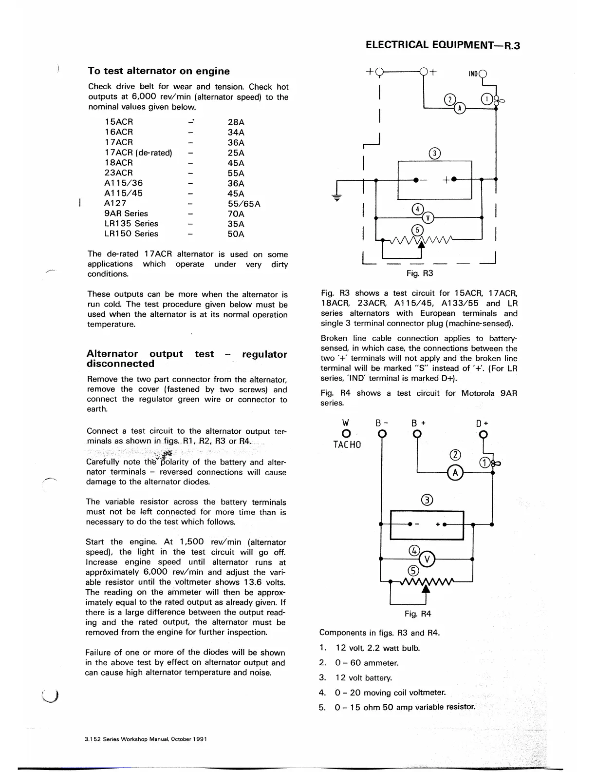 Perkins 3.152 - To Test Alternator on Engine; Alternator Output Test - Regulator Disconnected