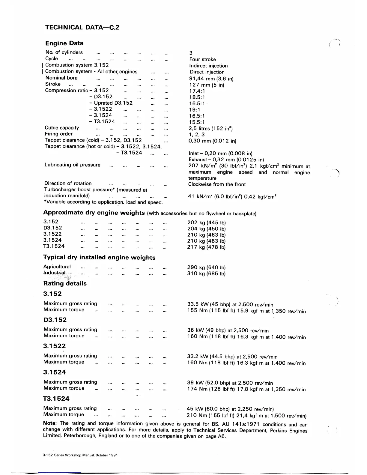 Perkins 3.152 - Engine Specifications and Weights