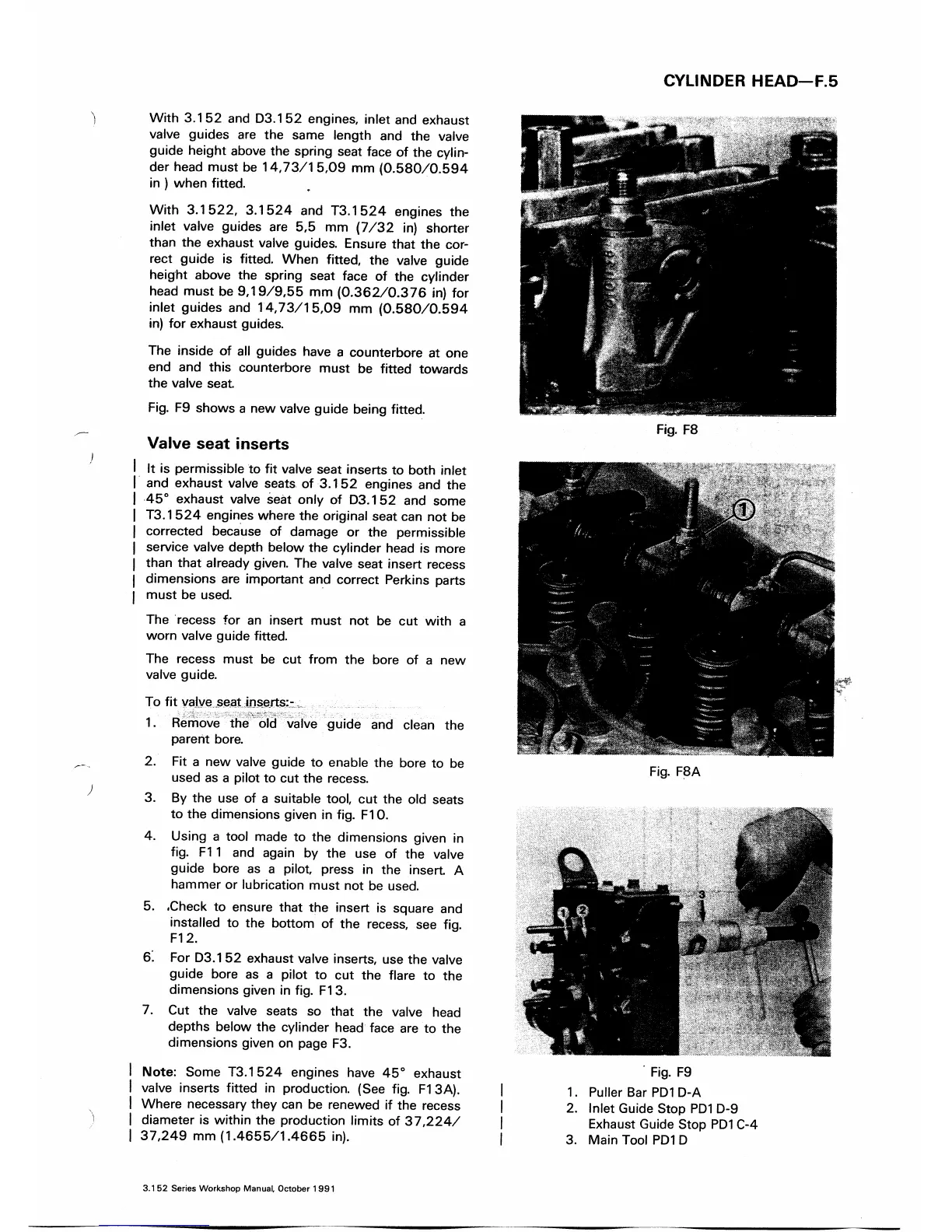 Perkins 3.152 - Valve Seat Inserts and Dimensions