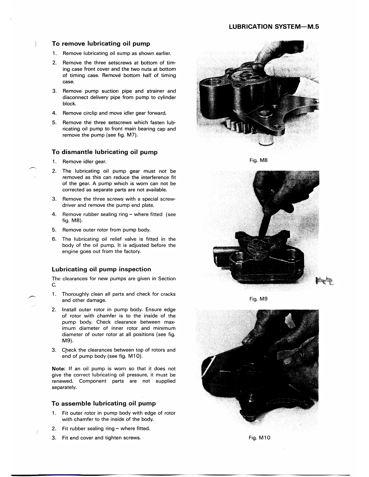 Perkins 3.152 - To Remove Lubricating Oil Pump; To Dismantle Lubricating Oil Pump; Lubricating Oil Pump Inspection; To Assemble Lubricating Oil Pump