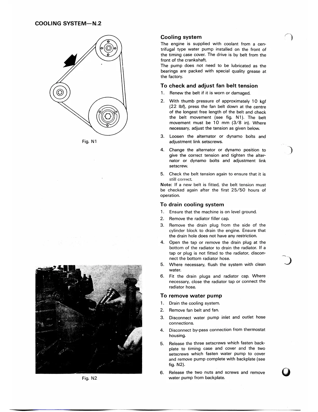 Perkins 3HD46 - To Check and Adjust Fan Belt Tension; To Drain Cooling System; To Remove Water Pump