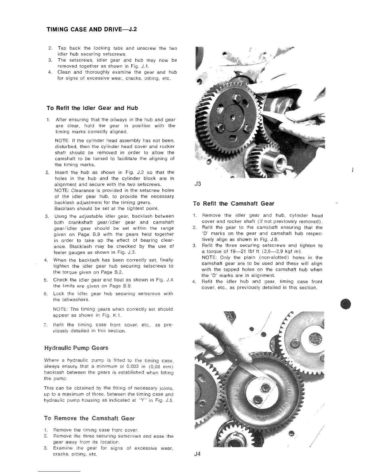 Perkins 4.108 - Hydraulic Pump Gears; To Refit the Camshaft Gear; To Refit the Idler Gear and Hub; To Remove the Camshaft Gear