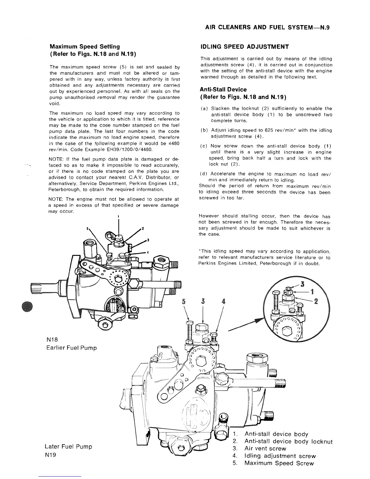 Perkins 4.108 - Idling Speed and Maximum Speed Adjustment