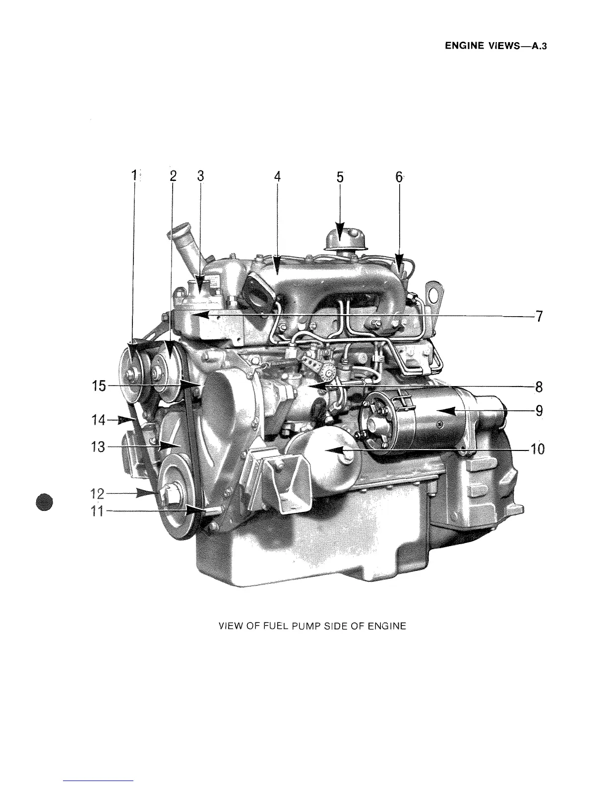 VIEW OF FUEL PUMP SIDE OF ENGINE