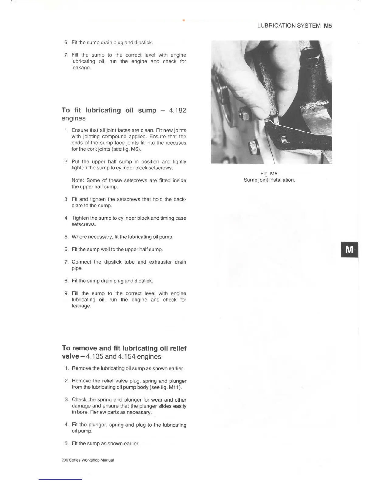 Perkins 4.135 - To Fit Lubricating Oil Sump - 4.182; To Remove and Fit Lubricating Oil Relief Valve - 4.135 and 4.154