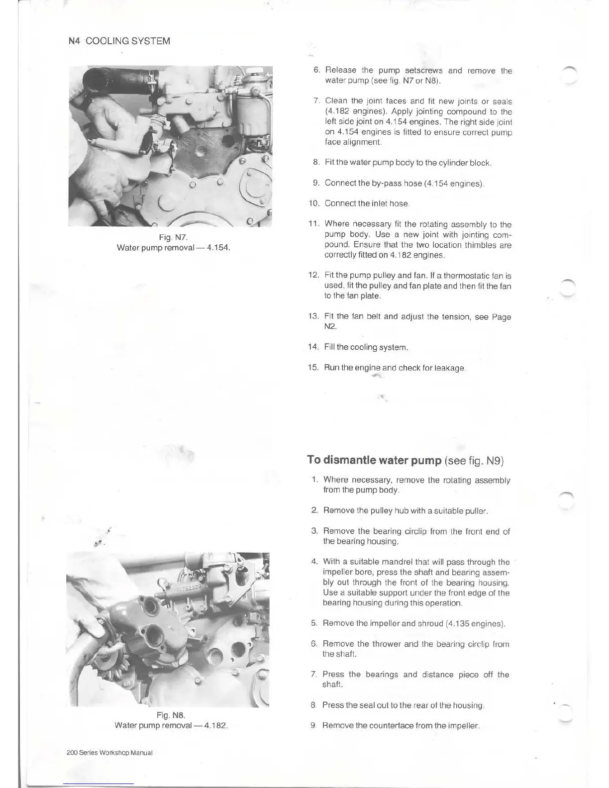Perkins 4.135 - To Dismantle Water Pump; Water Pump Removal - 4.154; Water Pump Removal - 4.182