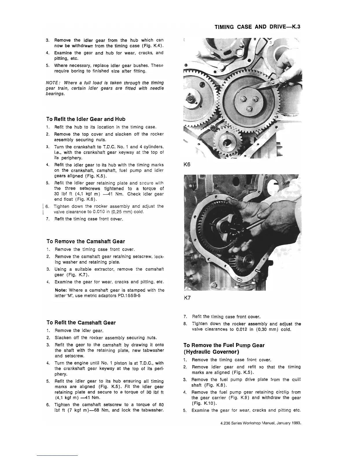 Perkins 4.212 - To Refit the Idler Gear and Hub; To Remove the Camshaft Gear; To Refit the Camshaft Gear; To Remove the Fuel Pump Gear