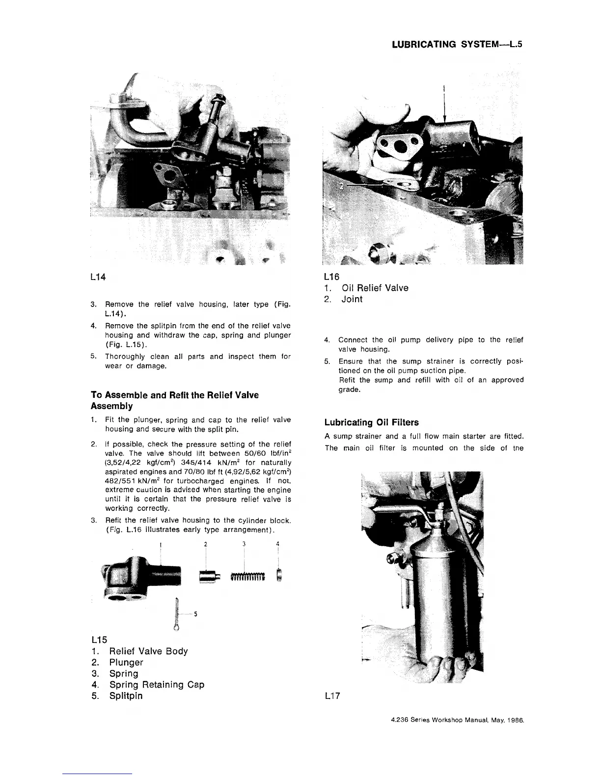 Perkins 4.212 - To Assemble and Refit the Relief Valve Assembly; Lubricating Oil Filters