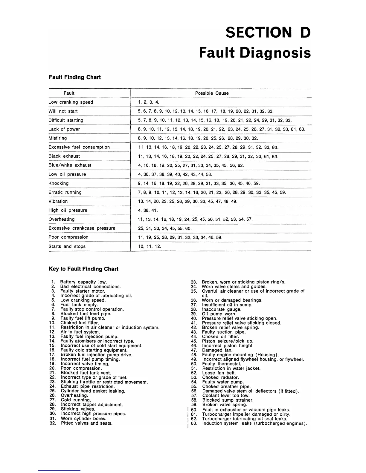 Perkins 4.248 - SECTION D Fault Diagnosis; Fault Finding Chart; Key to Fault Finding Chart