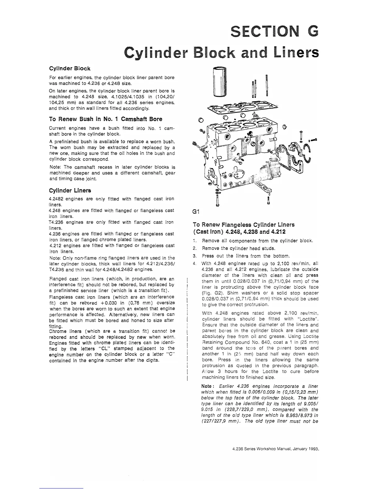 Perkins 4.248 - SECTION G Cylinder Block and Liners; To Renew Flangeless Cylinder Liners (Cast Iron)