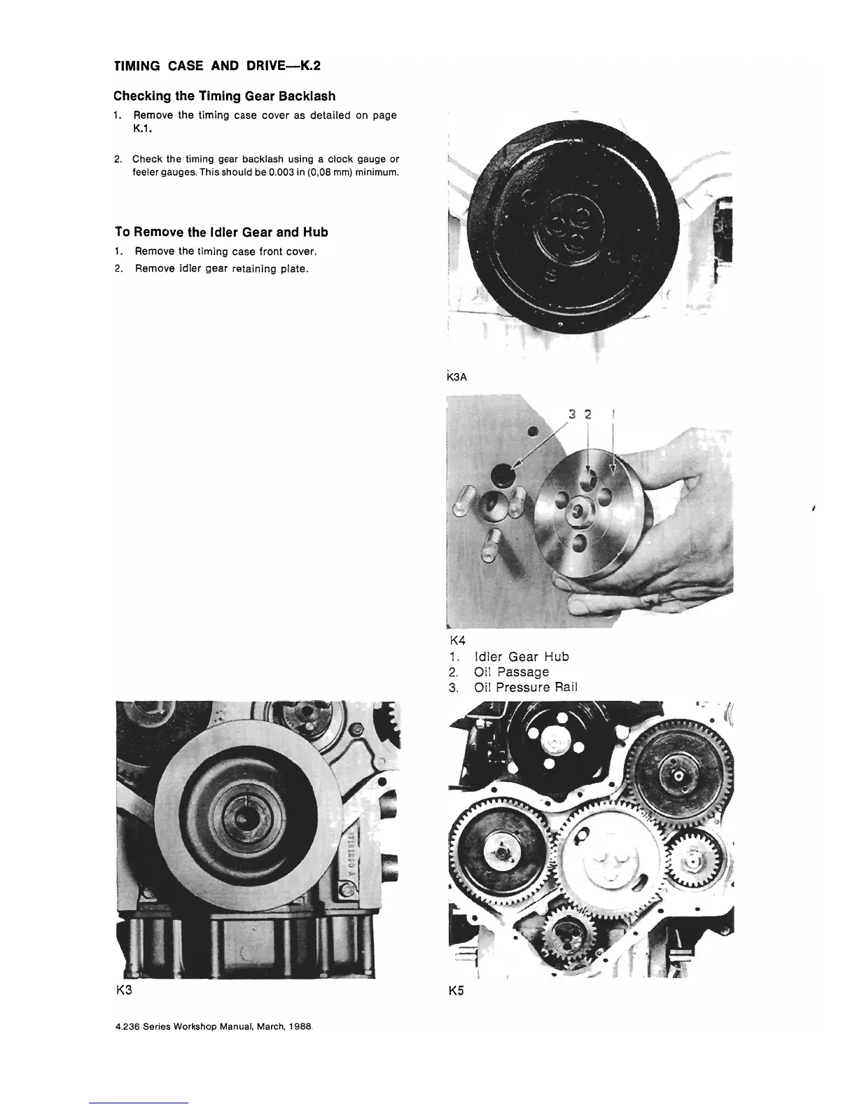 Perkins 4.248 - Checking the Timing Gear Backlash; To Remove the Idler Gear and Hub